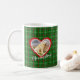 Personalise this christmas mug which is all about your faithful friend. There is a tartan-style background design in red, green and white wrapped all round the mug. Upload your favourite photo and add a name or other short text. The photo is framed in a red heart with an edging of white pawprints. On the back there is further customisable text (the default is simply "Merry Christmas").