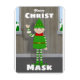 Cute elf character holding a face mask. Text reads "Merry Christ Mask"