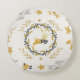 Christmastime Deer Yellow Cream Floral Round Cushion