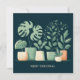 Personalizable minimalistic illustration of potted indoor plants on a light blue background. Features leafy green plants, including a monstera, cascading vines, and a spotted plant in patterned pots. Soft greens, simple lines, and clean, calming design for a modern botanical look.