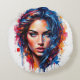 Chromatic Muse – Neon Splash Portrait Round Cushion