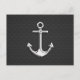 A silver chrome like anchor design on a black carbon fiber style background decor. A modern nautical gift.