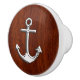 Chrome Anchor on Nautical Mahogany Grain Print Ceramic Knob