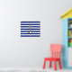 A silver chrome like anchor applique on a horizontal navy blue style stripes print decor for a perfect nautical look.