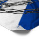 The symbol of Scotland, the Guardian Thistle, in a chrome Celtic Knot design overlaying the Flag of Scotland.