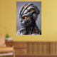 Chrome Cyborg Orange Glow Sci-Fi AI Portrait Poster