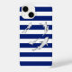 A modern nautical applique design on blue stripes background for a fine phone case.