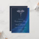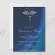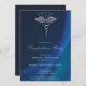 Precious noble dark chrome Caduceus symbol on a modern blue background design for your Graduation invitation for your friends and family members.
