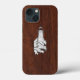A modern nautical silver chrome like applique style on a wet mahogany wood decor for a custom phone case everyone on, or off the boat will enjoy.