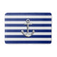 Chrome Like Anchor Nautical Navy Blue Stripes Bath Mat