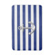 A Chrome Anchor look on Nautical Navy Blue Stripes Print on a fine custom bathroom mat.