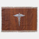 Chrome Like Caduceus Medical Symbol Mahogany Style Throw Blanket