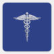 Chrome Like Caduceus Medical Symbol Navy Blue Deco Square Sticker