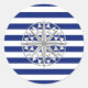 Chrome Like Compass on Nautical Stripes Classic Round Sticker