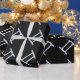 A silver chrome like Gemini zodiac symbol applique on a black snake skin design texture print background. A modern urban racy design for a great custom birthday gift idea.