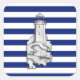 Chrome Like Lighthouse on Nautical Stripes Square Sticker