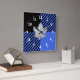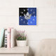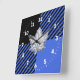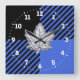 Chrome Like Maple Leaf on Blue Buffalo Check on a Square Wall Clock