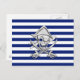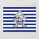 A silver chrome like pirate design on a navy blue stripes decor. A modern nautical gift.