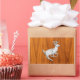 A silver chrome like running white tail deer on a teak wood grain style decor for a fine custom gift idea.