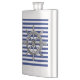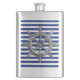 Chrome Nautical Wheel on Navy Stripes Print Hip Flask