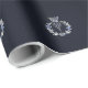 A chrome like Scottish thistle applique design on a navy blue carbon fibre style print.