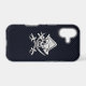 A modern silver chrome like nautical applique design on a carbon fiber background for a fine phone case.