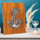 Chrome Rope Anchor on Teak Veneer Plaque