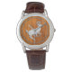 Chrome Running Deer on Fine Teak Print Watch