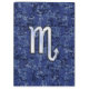 A silver chrome like Scorpio zodiac symbol on a vibrant navy blue digital camouflage design print decor. A modern urban racy design for a great custom birthday gift idea.