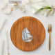 Chrome Silver like Sailboat on Teak Veneer Paper Plate