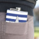 A modern nautical silver like applique style on a navy blue stripes pattern decor for a fine custom gift.