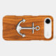 A silver chrome like anchor design on a teak wood veneer grain style background decor. A modern nautical skin.