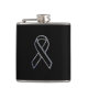 Chrome Style Black Ribbon Awareness on Black Hip Flask