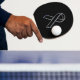 Chrome Style Black Ribbon Awareness on Black Ping Pong Paddle