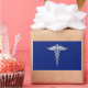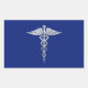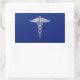 Chrome Style Caduceus Medical Symbol on Navy Blue Rectangular Sticker