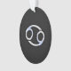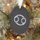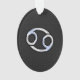 A silver chrome like Cancer zodiac symbol applique on a black snake skin style print background. A modern urban racy design for a great custom birthday gift idea.