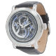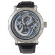 A dynamic Dragon in chrome silver crest style on a carbon fibre like background print fashion watch.