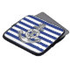 A silver lifesaver anchor design on a navy blue stripes decor. A modern nautical gift.
