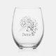 Chrysanthemum Black Line Drawing with Your Name Stemless Wine Glass