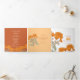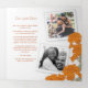 Botanical outline graphic drawing of chrysanthemum orange flowers with green leaves on a personalised wedding square wedding program. Customise with your own bride and groom's name and wedding date, wedding ceremony, love story, wedding party and thank yous plus three of your own photos, one full page centre and two on your wedding story page. Perfect for a fall orange wedding. Design features a print of graphic outline drawing of chrysanthemum flowers by Sarah Trett for www.mylittleedenweddings.com only on available on zazzle.