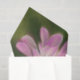 Beautiful artwork depicting a purple-pink and creamy white chrysanthemum blossom with a bud and leaf set against golden yellow ochre and olive green embellishes this tissue paper.