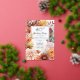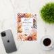 Elegant chrysanthemums and peonies floral design "40th Birthday Party" featuring a floral frame of mums and peony flowers in burgundy, burnt orange, apricot and pink on a white background centre panel. Beautiful rose gold real foil text. Beautiful rose gold real foil text. Back design features a multi-layered coordinating colours watercolor background