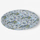 The image on this elegant paper plate was inspired by the fresh, clean & cosy furnishings typical of English Cottages - according to British television shows, films, & interior design magazines, that is! Design features a profusion of black-outlined white Mums, sprinkled w/ pale blue highlights on a mottled blue background, and topped w/a customisable text field (for recipient's monogram) in blue script set within a circular white medallion.