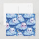 "Chubby Kawaii Cats and Clouds 3D Seamless Pattern Postcard