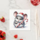 A cute fluffy mouse wears a Santa hat and holds a large striped candy cane