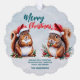 chubby squirrel Santa hat Merry Christmas snow Tree Decoration Card