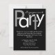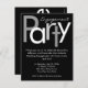 Cute engagement invitation, customise with any text. Fun and cheerful block style lettering in bold high contrast black and white typeface on black background. Sleek contemporary design is perfect for marriage and wedding engagements. Customise online with your event details.