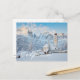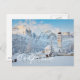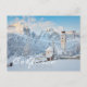 Photo postcard of the church of Colfosco covered in snow with in the background the Sella Group Dolomites mountains in a beautiful winter landscape in Alta Badia, South Tyrol, Italy with the text 'Colfosco, Alta Badia'.