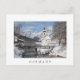 Photo postcard of a church under a layer of snow next to a mountain stream and a bridge with Alps mountains in the background in a winter landscape in Ramsau bei Berchtesgaden in the Berchtesgadener Land in Bavaria, southern Germany, near the border with Austria with a white border and the text 'Germany'.