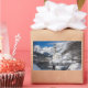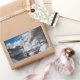 Rectangular photo sticker with the famous St. Sebastian church in the snow backed by high Alps mountains with a bridge and a small brook in Ramsau b. Berchtesgaden, near Austria in Germany in winter.